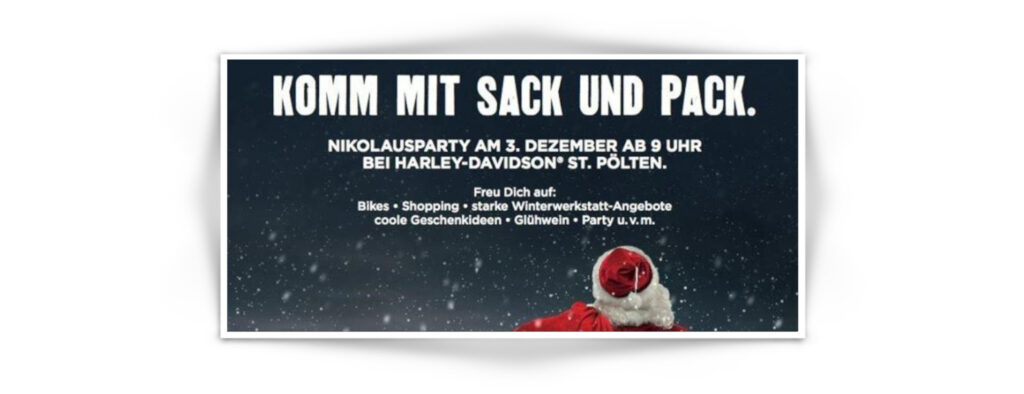 Wie alle Jahre besuchten wir die Nikolausparty bei unserem Harley Dealer und trafen dort unsere lieben Freunde. Gemeinsam hatten wir viel Spaß, Freude und interessante Gespräche. Wir durchstöberten auch die Harley Modekollektion und begutachteten die neuen Modelle 2017.
